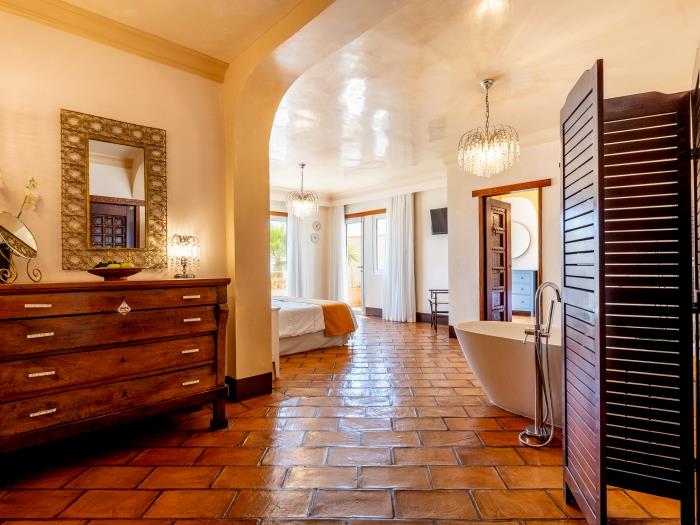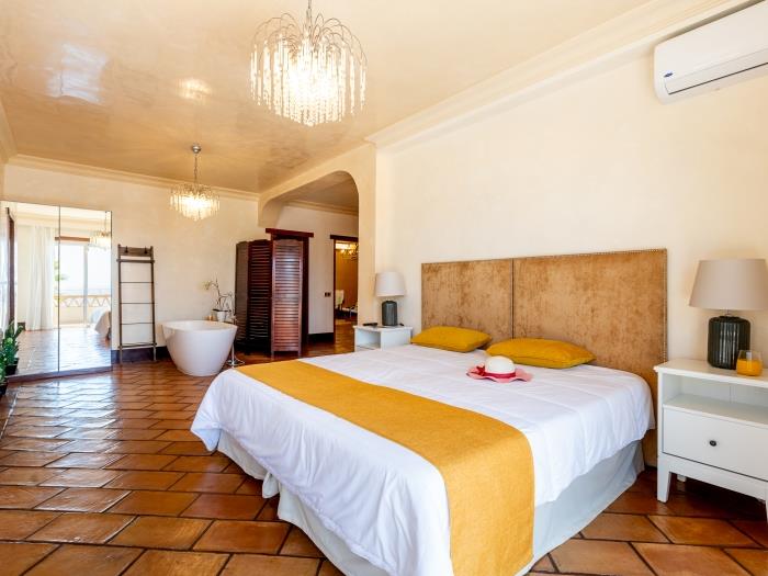 spacieux, lumineux et s’ouvre directement sur le jardin tropical, les espaces chill-out et une superbe piscine avec vue sur la mer.