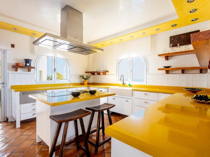 Elle dispose de trois cuisines entièrement équipées, parfaites pour un usage familial ou pour accueillir un chef privé lors d’événements. Le salon principal est